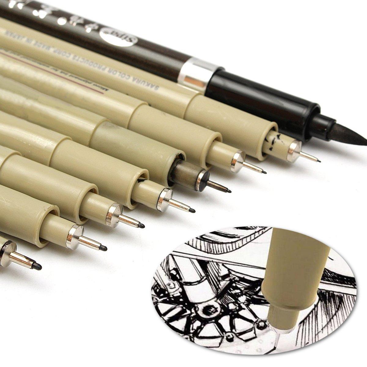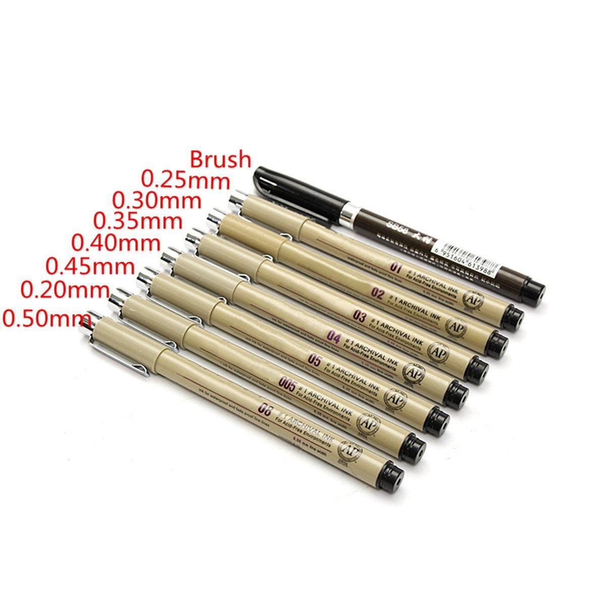 • 8 pc Pigmento Micron Sakura Neelde Soft Escova Desenho Caneta 005 01 02 03 04 05 08 Escova Caneta Marcadores de Ponto Fino