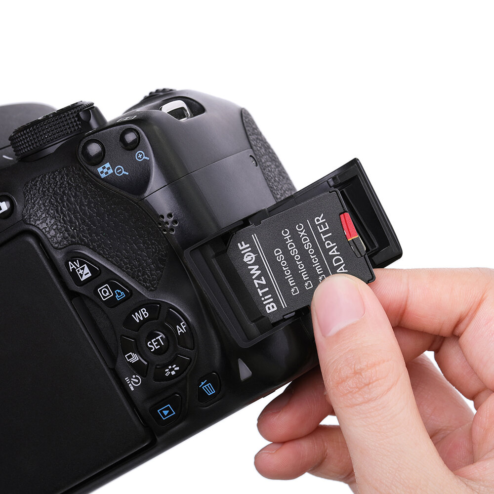 Vem com um adaptador SD, converte facilmente o cartão Micro SD e cartão de memória SDHC / SDXC e trabalha com sua câmera digital.