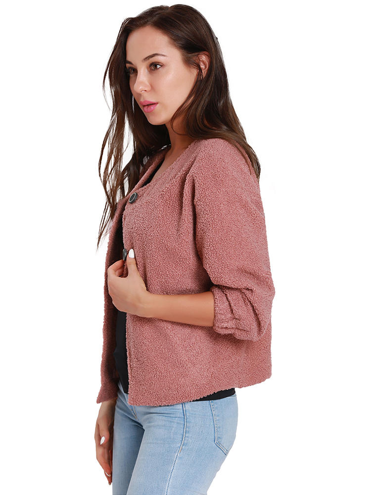 Casacos de manga longa de botão de lã de cor sólida de mulheres casuais COD