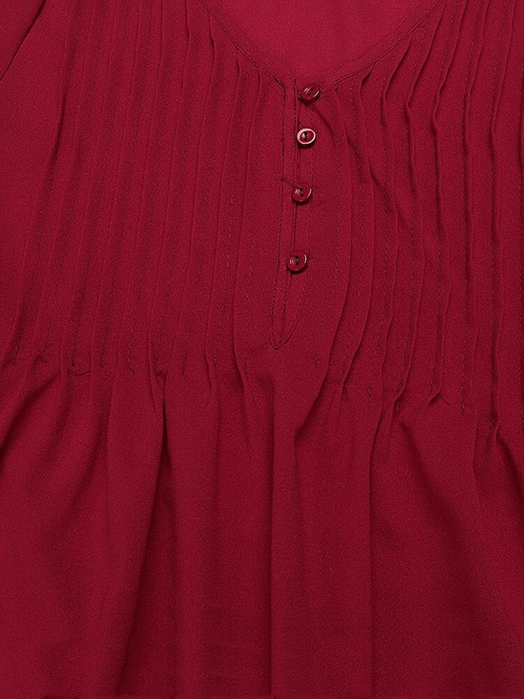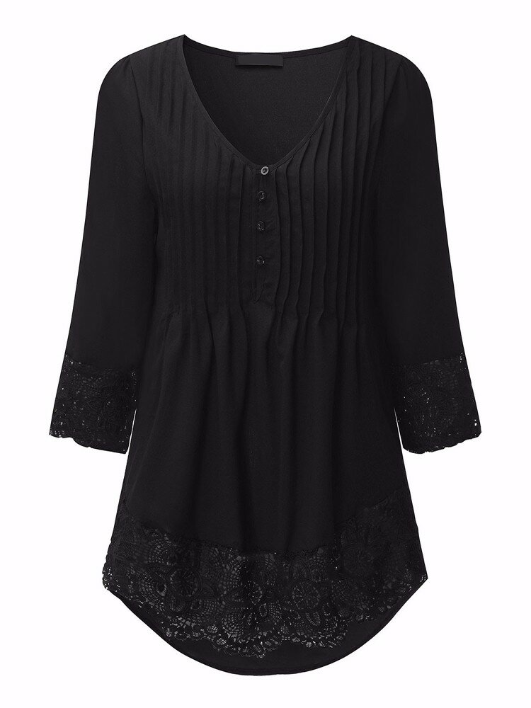 Blusa plissada de manga três quartos com retalhos de renda COD