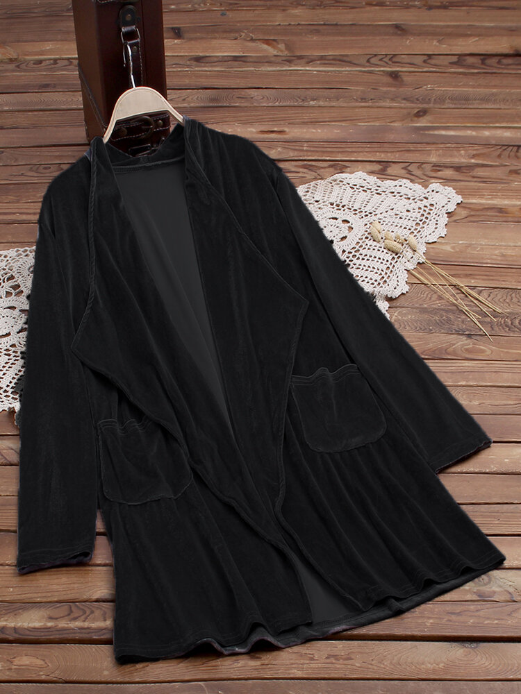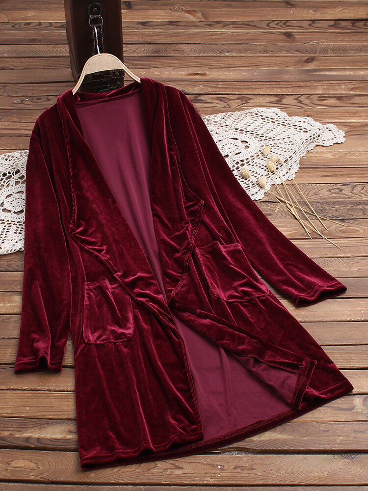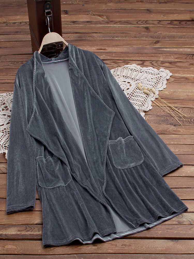 Casacos de trincheira de veludo de manga comprida de cor pura COD
