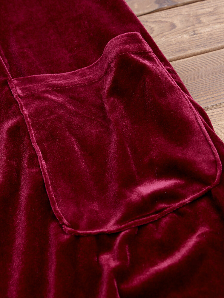 • Casacos de trincheira de veludo de manga comprida de cor pura