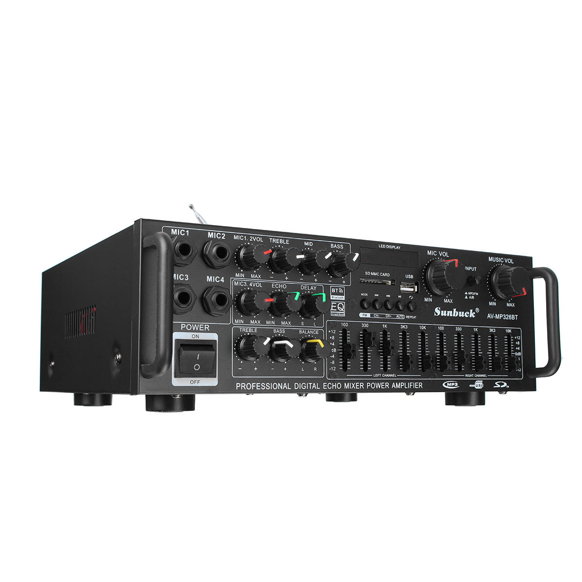 • Sunbuck AV-MP326BT 220V 800W 4 ohm 2CH EQ Bluetooth Suporte de amplificador estéreo USB Disk SD Card