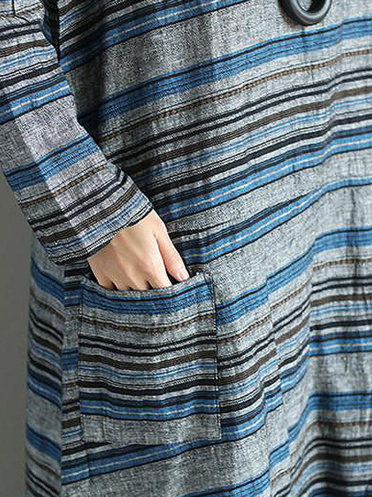 Mulheres vintage luva longa listrada colher com pescoço vestido de medianoche com bolsos