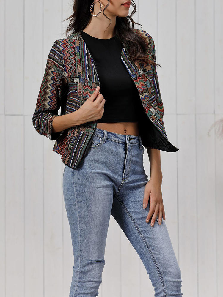 Casacos de manga comprida de impressão de mulheres vintage COD