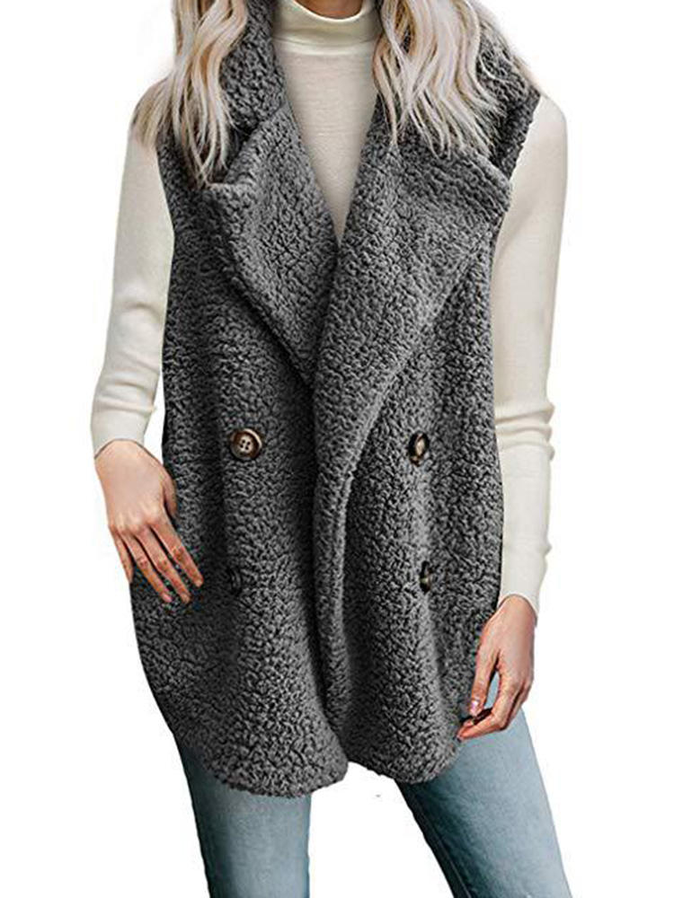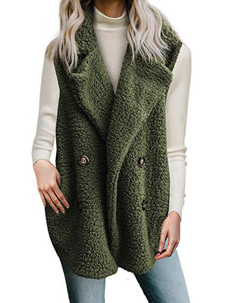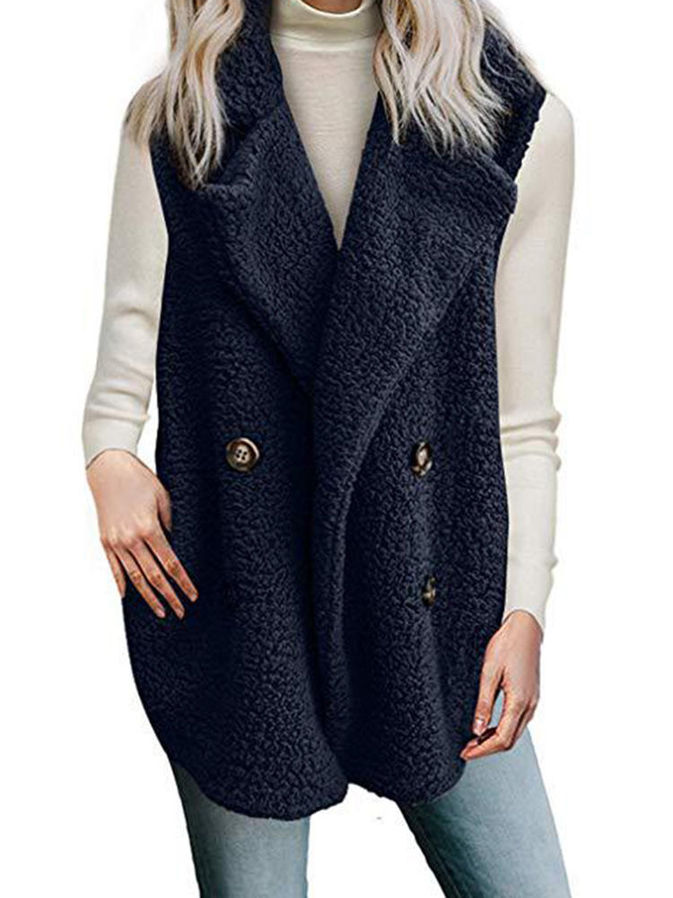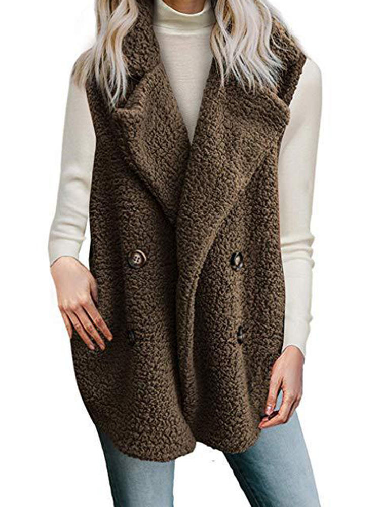 Mulheres Casual Outono Inverno Cor Sólida Sem Mangas Velo Abotoado Casacos Colete COD